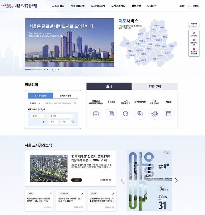 서울시가 모든 도시계획과 건축, 주택, 부동산 정보를 확인할 수 있는 '도시공간포털'을 운영한다.