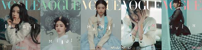 뉴진스는 18일 어도어를 떠나 독단적으로 개설한 '진즈포프리' 계정을 통해 보그 코리아 화보를 공개했다.