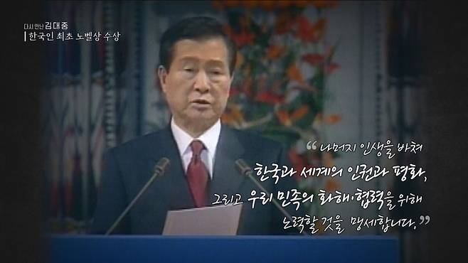 김대중 전 대통령은 2000년 12월 10일 노르웨이 오슬로에서 한국인 최초로 노벨평화상을 받았다. 40여 년간 한국과 동아시아 전반의 민주주의와 인권에 대한 공로, 6·15 남북 공동선언 등 남북 화해와 긴장 완화에 기여한 공로 등을 인정받았기 때문이다. 김대중 대통령의 노벨상 수상은 한반도 문제에 대한 국제사회의 관심을 높여 한반도 평화와 통일을 앞당기는 데 도움을 줄 것으로 큰 기대를 모았다. 또한 새천년 최초 수상자이면서 노벨상 100회 수상자였고, 노벨상 100년 역사상 위원회 반대 의견 없이 만장일치로 수상이 결정되어 전 세계의 이목이 집중되기도 하였다. -「대통령 기록관」<이 기록 그 순간 (상세)> 발췌