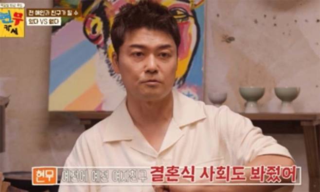전 연인의 결혼식에 참석하는 것만으로도 화제가 되는 가운데 전현무는 전 여자친구 결혼식에서 사회를 봐준 사연을 공개해 시청자들을 놀라게 했다. 전현무는 지난 8월 15일 방송된 ENA 예능 '현무카세'에서 '전 연인과 친구가 될 수 있다VS없다'를 주제로 뜨거운 논쟁을 벌이던 중 "난 예전에 전 여자친구 결혼식 사회도 봐줬다"라고 밝혀 출연진에게 충격을 안겼다. 배우 채정안이 "돈 받았냐"라고 추궁하자 전현무는 "돈을 왜 받냐"라며 부인했다. 또한 배우 김지석이 "그 신랑이 형이랑 만난 거 아냐"라고 질문하자 전현무는 "안다"라고 답했다. 이어 전현무는 "헤어지고 나면 그 사람은 그냥 여자 사람일 뿐이다. 그래서 오히려 온앤오프가 더 깔끔하다"라고 담담히 말했다.