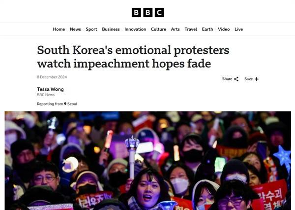 | ▲ 영국 BBC가 보도한 한국 탄핵 집회 관련 기사 |