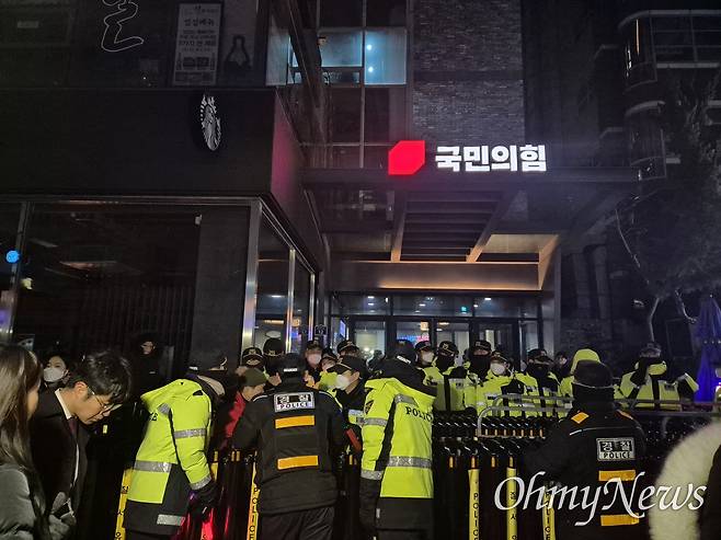 | ▲ 윤석열 대통령이 3일 오후 비상계엄을 선포한 가운데 영등포 국민의힘 당사 앞 모습. |