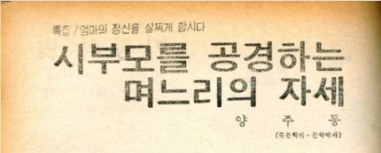| ▲ 엄마의 정신을 살찌게 합시다라는 특집 내용이 '시부모를 공경하는 며느리가 됩시다'이다. 지금은 다소 이해하기 어렵지만 당시는 이런 생각이 팽배했다. |
