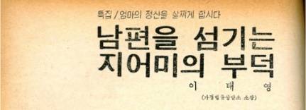 | ▲ 제목만 읽어도 엄마의 정신을 살찌우는 게 아닌, 스트레스가 될 수 있는 기사지만 당시 사회는 여자보다 아내와 어머니로서의 역할을 강조했다. |