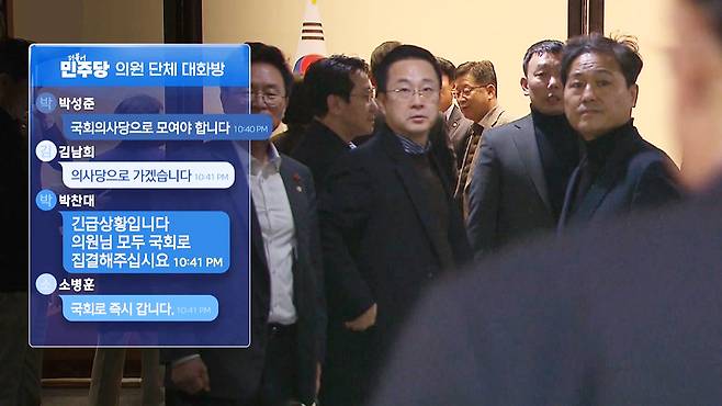 관련보도 : [뉴스데스크] 민주당 단체 대화방‥13분 만에 "모두 국회 집결" 지침 https://imnews.imbc.com/replay/2024/nwdesk/article/6669081_36515.html