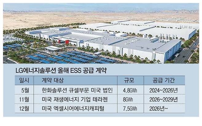 실제 LG에너지솔루션 ESS전지사업부는 올해 5월 한화큐셀과 4.8GWh 규모 ESS 공급 계약을 체결한 데 이어 지난 11월에는 미국 재생에너지 기업 테라젠으로부터 최대 8GWh 공급 계약을 따내며 올해만 세 건의 수주 성과를 달성했다. LG에너지솔루션은 이번 수주 성공을 기반으로 해 배터리부터 SI에 이르는 완결형 사업 역량을 바탕으로 급성장하는 북미 ESS 시장을 선점한다는 전략이다.