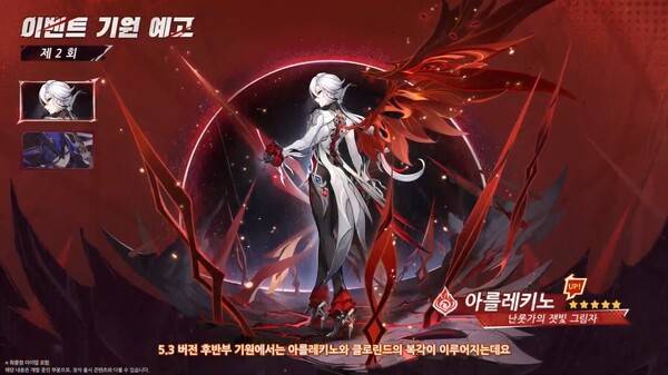 5성 캐릭터: 아를레키노(복각), 클로린드(복각)