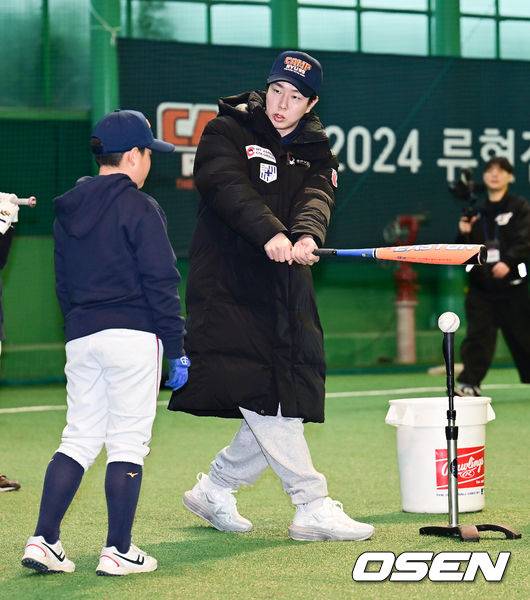 NC 박건우가 유소년 선수에게 코칭을 하고 있다. 2024.12.21 / ksl0919@osen.co.kr