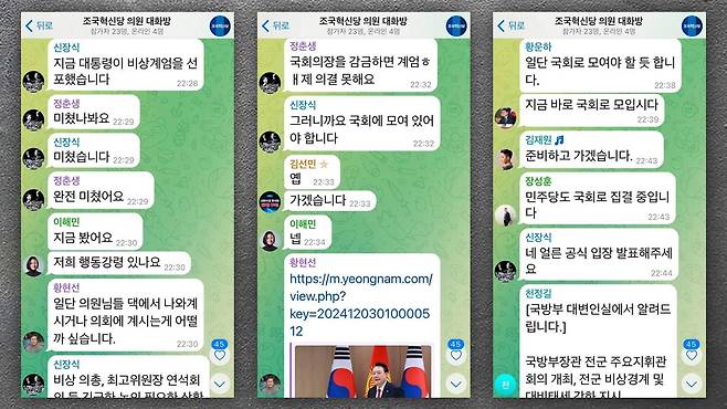 조국혁신당도 계엄 당일 단체대화방 공개 "완전 미쳤어요‥지금 바로 국회로"