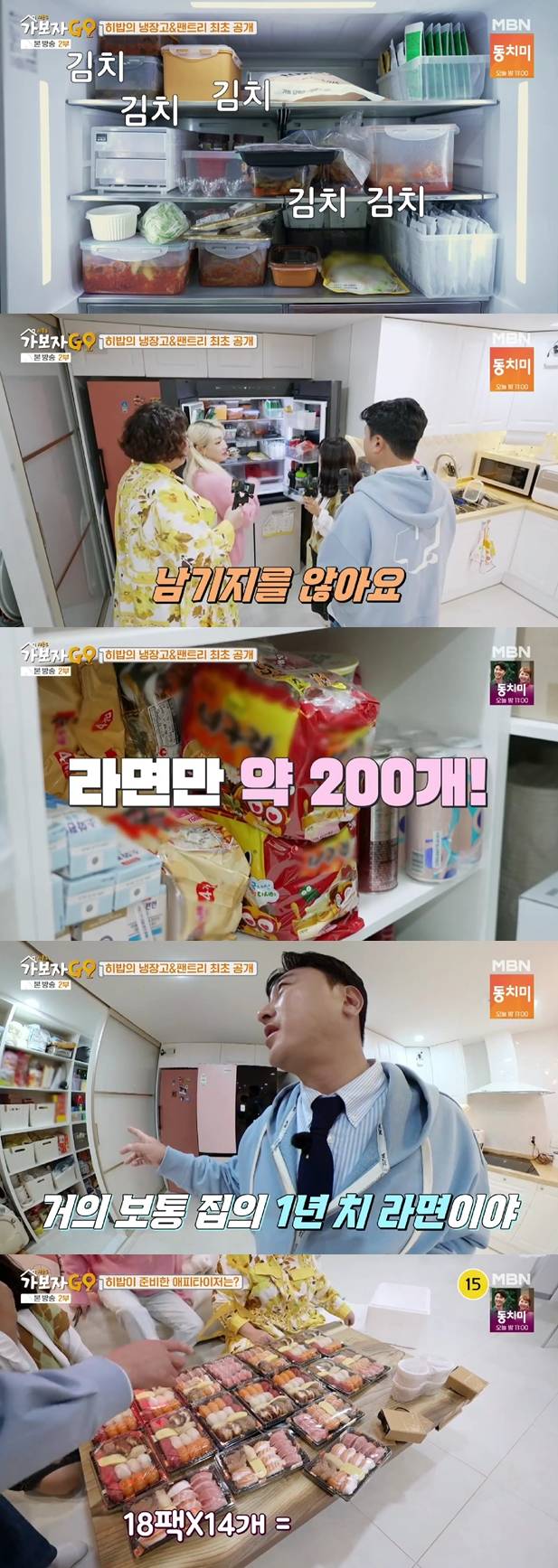이날 MC 안정환과 홍현희는 신기루와 함께 경기도 부천시에 위치한 히밥의 집을 방문했다. 최초 공개된 히밥의 부엌에는 냉장고가 두 개라 눈길을 모았다. 첫 번째 냉장고에는 김치 통만 5개가 넘었다.