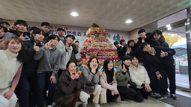 이날 만들어진 라면 트리는 크리스마스이브까지 학교 중앙현관에서 전시되다가, 해체해 제주도내 보육시설에 기탁될 예정입니다.