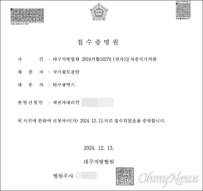 한편 동대구역 광장 소유권을 가진 국가철도공단은 지난 13일 대구지법에 대구시를 상대로 '공사 중지 가처분 신청'을 제기했다.