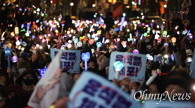 | ▲ [현장] 그냥 보내긴 아쉬워... 남태령 트랙터 배웅하는 응원봉들 ⓒ 김예지 |