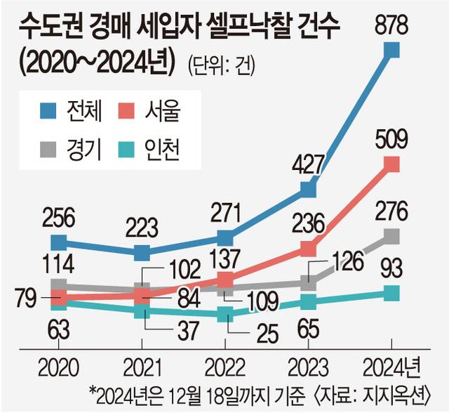 세입자의 셀프 낙찰은 2022년 '빌라왕 사태' 등 대규모 전세 사기 문제가 불거지면서 매년 가파르게 증가하고 있다.
