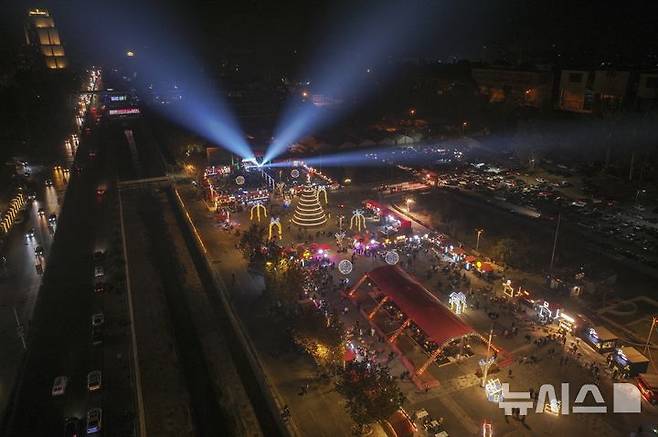 [다마스쿠스=AP/뉴시스] 22일(현지시각) 시리아 다마스쿠스의 한 광장에서 크리스마스 축하 콘서트가 열리고 있다. 2024.12.23.