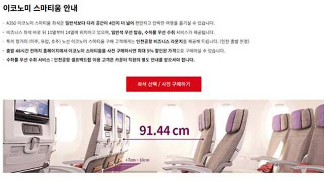 ▲ 아시아나항공 이코노미 스마티움