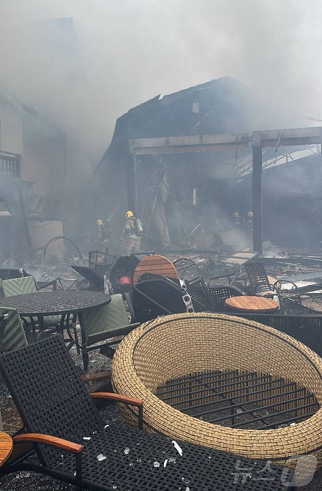 (그라마두 AFP=뉴스1) 우동명 기자 = 22일 (현지시간) 브라질 히우그란지두술주 그라마두의 주택가에 소형 항공기가 추락해 최소 9명이 숨진 현장의 모습이 보인다. 2024.12.23