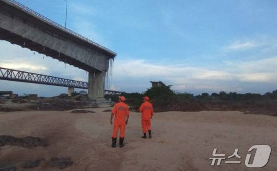 (토간티스 AFP=뉴스1) 우동명 기자 = 22일 (현지시간) 브라질 토간틴스 강을 가로지르는 교량이 무너진 현장에 소방대원이 출동을 하고 있다. 2024.12.23
