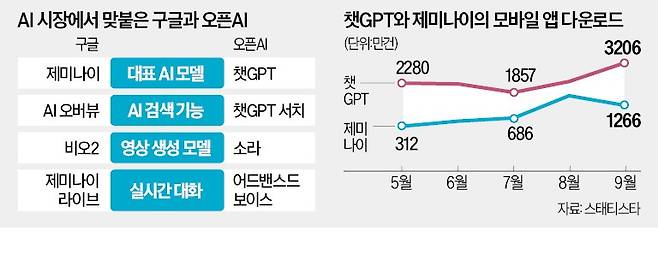 인공지능(AI) 시장 주도권을 두고 구글과 오픈AI의 경쟁이 치열해지고 있다.