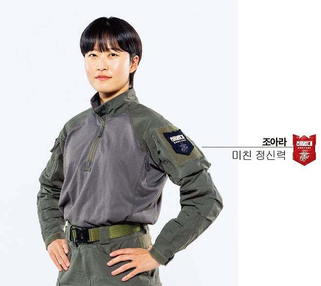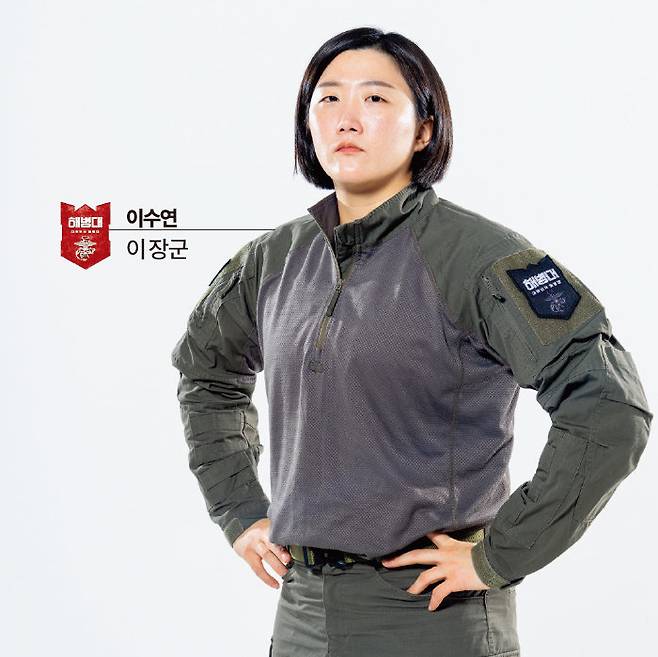 이 | 저는 할아버지가 6·25 참전 용사셔서 어릴 때부터 군인에게 관심이 있었습니다. 운동선수를 은퇴하고 새로운 일을 찾을 때 군인이 돼야겠다고 결심했고요. 할아버지는 육군이셨지만 저는 '소수 정예’라는 말에 끌려서 해병대를 선택하게 됐습니다. 재인 대원님이 명찰에 끌린 것처럼 팔각모와 전투화도 멋있어 보였고요. 장교 후보생으로 무박 훈련할 때는 그 선택을 후회하기도 했는데, 포기하기엔 자존심이 허락하지 않았습니다.