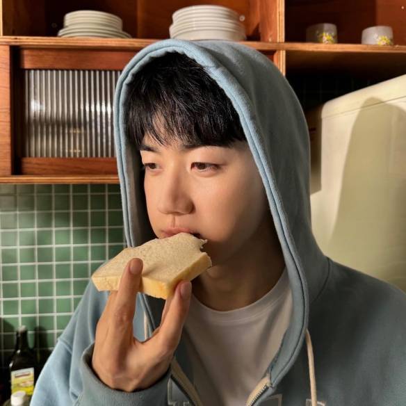 ‘설레는 연하남’의 필수 아이템을 고르라면? 바로 후드입니다. 부담 없이 입을 수 있어 손이 잘 가는 동시에, 어떤 하의와도 찰떡같이 어울리기 때문인데요. 특히 강훈이 후드를 활용하는 방식은 ‘귀여움’입니다. 엘리베이터 거울샷에서는 검은 후드에 리본을 자연스럽게 묶어 애교스러운 모습을 부각했어요. 하늘색 후드 집업을 반쯤 올린 채 빵을 문 사진은 이미 수많은 팬들의 배경화면일 게 틀림없군요.