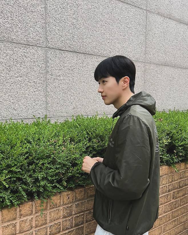 주말의 강훈을 대표하는 아이템은 단연 캐주얼한 바람막이입니다. 가벼운 산행에는 화이트 포인트가 더해진 바람막이를 끝까지 올려 입으며 편안한 무드를 완성했죠. 카키 색 바람막이를 입고 화단 앞에 서 있는 모습에선 자연스러운 멋이 가득 묻어나지 않나요? 마치 집 앞 데이트를 나온 듯, 팬들의 상상을 마구 불러일으키는 모습입니다.