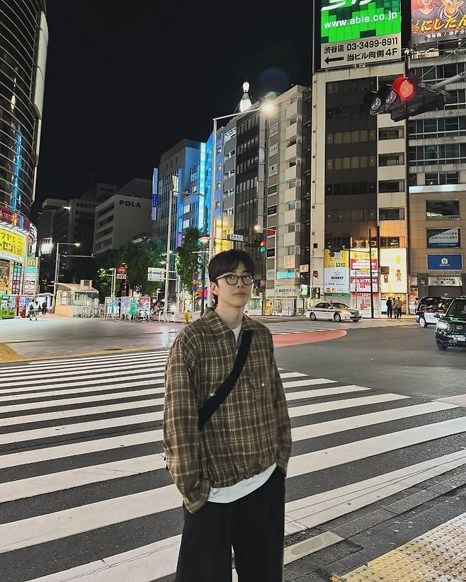 강훈의 또 다른 매력 포인트는 넉넉한 핏의셔츠입니다. 브라운과 아이보리가 섞인 체크무늬 셔츠를 입고 도쿄 거리 한복판에 선 강훈의 모습은 너디하면서도 트렌디한 공대생 감성을 자아냅니다. 마지막 단추를 일부러 풀어 단정함과 자유로움을 동시에 드러내는 깨알같은 디테일도 놓치지 않았고요.