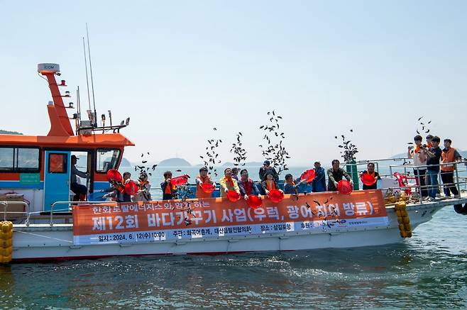 한화토탈에너지스는 지역 환경 보호에도 앞장서고 있다. 대표적인 활동이 바로 매년 여름 서산·대산 인근 바다에서 개최하는 치어 방류행사다.