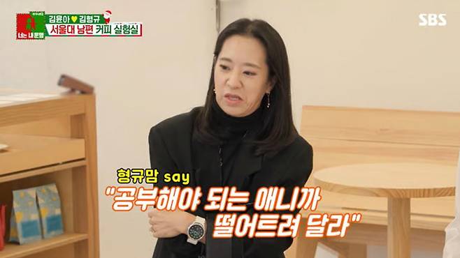 김형규 누나는 신메뉴를 개발하는 동생을 보며 "내 동생은 나랑 쿵짝이 잘 맞지만 어떻게 보면 특이하고 개성이 강하지 않나. 고생이 많다. 잘 부탁한다"라며 김윤아에게 감사한 마음을 전했다. 이어 김형규 누나는 "(동생은) 뭐 하나에 꽂히면 엄청 그거만 보는 스타일이다. 공부를 해도 24시간 의자에 앉아있는 사람 처음 봤다. 의자에서 잤다가 먹었다가"라고 말해 놀라움을 자아냈다. 이에 이현이는 "저 정도 해야 서울대 가는구나"라고 반응했고, 김구라도 "그러니까 서울대 치대 가고 그러지"라며 인정했다.