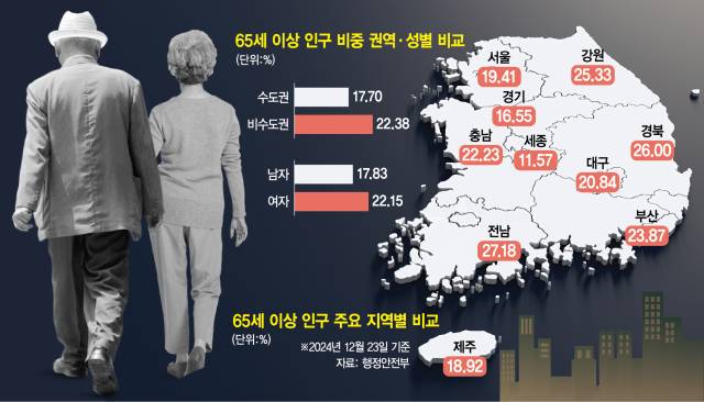 日보다 4년 빠른 초고령화···노인 비중 비수도권 22%, 전남 27%