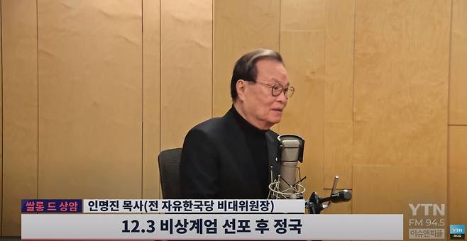 ◈인명진: 소신 없는 사람들이 국회의원이 옛날에도 그랬습니다. 이런 어려운 때 우리 국민의힘 국회의원들이 사실은 그러니까 제가 느낀 것 중에 하나는 우리 국민의힘이 보수에 대한 자긍심 또 철저한 이념적인 보수에 대한 이념적인 거 이런 거를 갖추는 사람이 해야지. 검사 하다가 대학교 교수 하다가 변호사 하다가 국회의원 되는 거 이거 안 될 것 같아요.