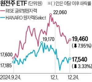 비상계엄 사태 후폭풍으로 국내 원자력 테마 상장지수펀드(ETF) 주가가 비틀거리는 가운데 해외 원전 ETF가 최근 국내 ETF보다 더 부진한 수익률을 기록했다. 미국 도널드 트럼프 2기 행정부 출범 기대에 단기 상승한 주가가 되돌아가면서다.