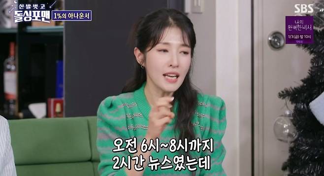 KBS 아나운서 출신으로 다수의 예능과 교양 프로그램 등을 진행했던 김경란은 “내가 아침 뉴스를 2년 넘게 했다. 6시부터 8시까지 2시간짜리 뉴스라 새벽 2시 반에 기상을 해야 했다. 심지어 월요일부터 토요일까지 주 6일 진행이었는데 한 달에 두 번은 일요일 당직근무까지 해야 했다. 그 와중에 ‘스펀지’ ‘열린 음악회’ 등 다섯 개의 프로그램도 했다”면서 상상초월 스케줄을 전했다.