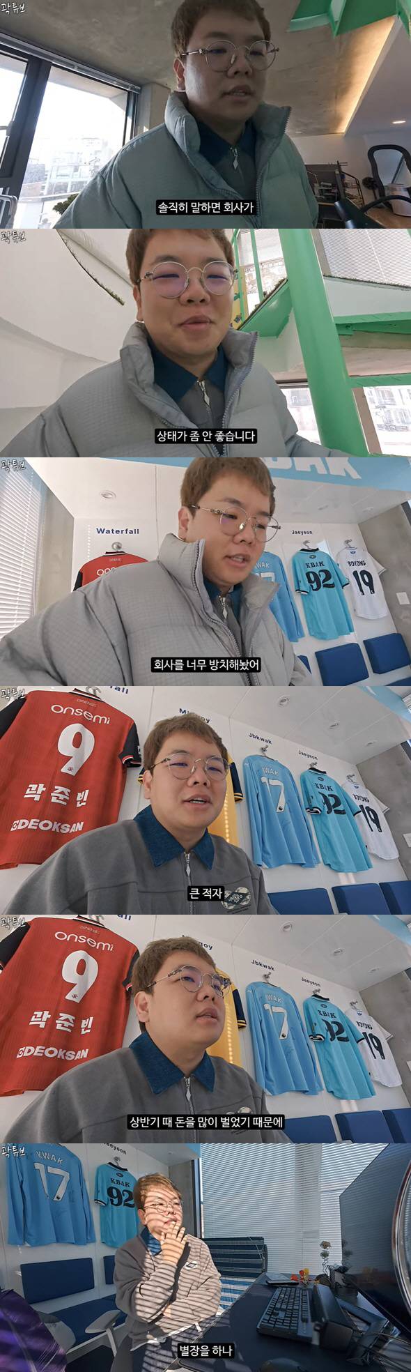 퉁퉁 부은 얼굴로 등장한 곽튜브는 "직원 3명 있는 회사인데 솔직히 말하면 상태가 안 좋다. 회사를 너무 방치해놨다. 큰 적자"라고 고백했다.
