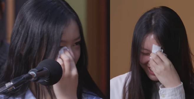 이어 "이 곡은 저희 모두가 힘든 시기에..."라고 말하다 눈물을 쏟으며 "오 망했다"고 당황했다. 휴지로 눈물을 닦으며 수습하는 하니 뒤로 해인이 눈물을 쏟았다.