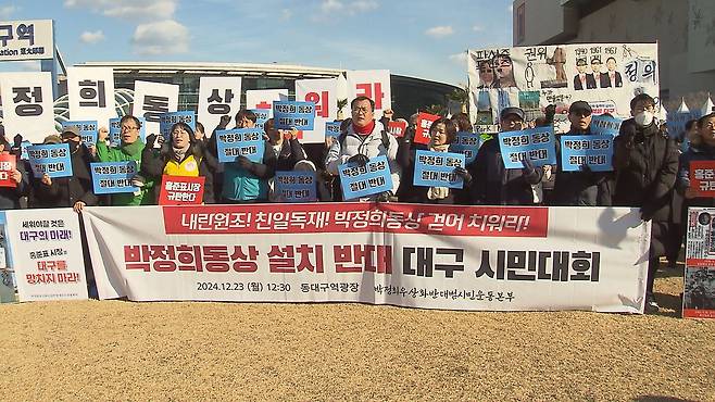 이들은 "일제강점기 친일 부역자이자 쿠데타를 일으켜 정권을 찬탈한 내란 원조인 박정희 동상을 세우는 것은 민주주의 역사를 퇴행시키는 일"이라고 비판했습니다.