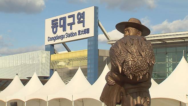 박정희 전 대통령 동상에···반으로 쪼개진 동대구역