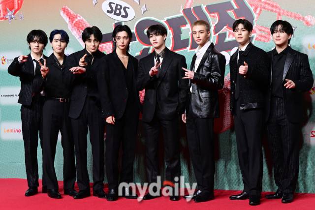 [마이데일리 = 곽경훈 기자] 25일 오후 인천 중구 인스파이어 리조트 그랜드 볼룸에서 진행된 '2024 SBS 가요대전' 레드카펫 행사에서 스트레이 키즈가 포즈를 취하고 있다.