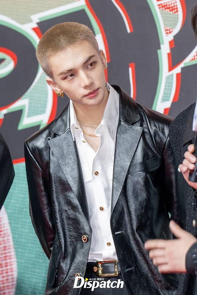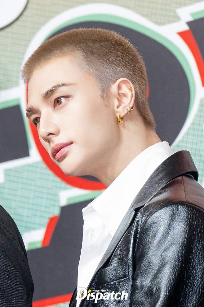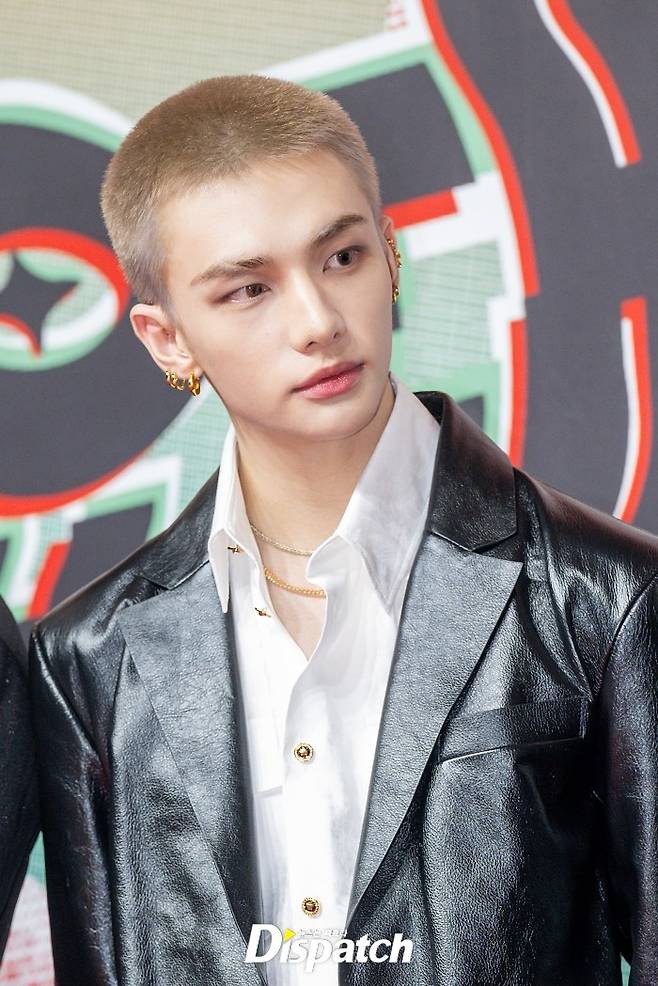 '스트레이 키즈' 현진은 파격적인 삭발 헤어스타일로 시선을 사로잡았다.