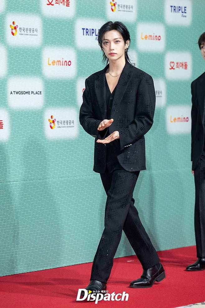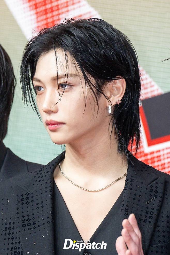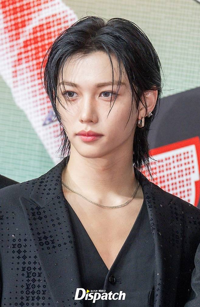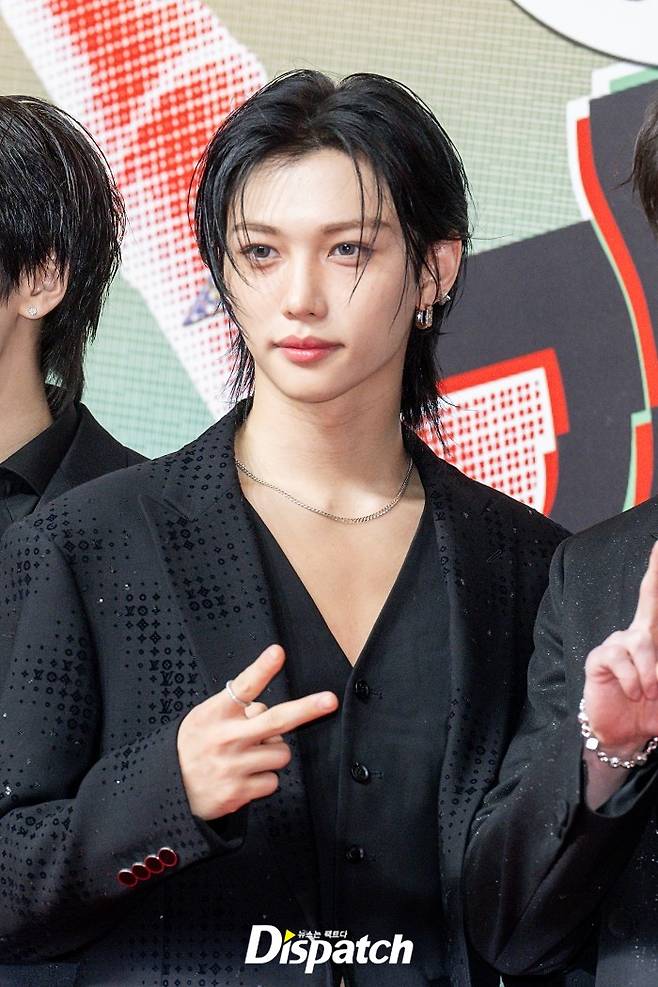 '스트레이 키즈' 필릭스는 흑발 헤어스타일로 변신을 시도했다. 섹시한 매력이 돋보였다.