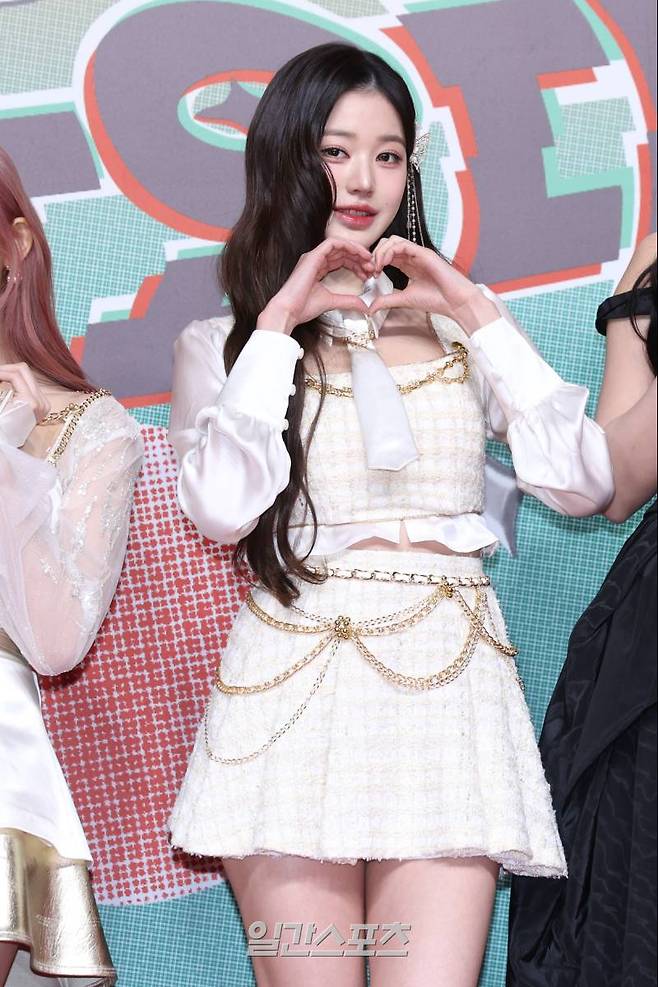 그룹 아이브 장원영이 25일 오후 인천 중구 인스파이어 리조트에서 열린 SBS 가요대전 레드카펫 행사에 참석해 포즈를 취하고 있다.