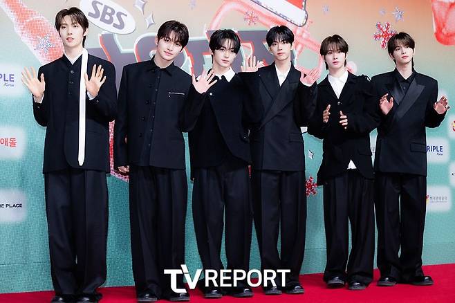 그룹 '투어스(TWS)'가 25일 오후 인천 중구 운서동 인스파이어 아레나에서 열린 '2024 SBS 가요대전' 레드 카펫에 참석해 포즈를 취하고 있다.