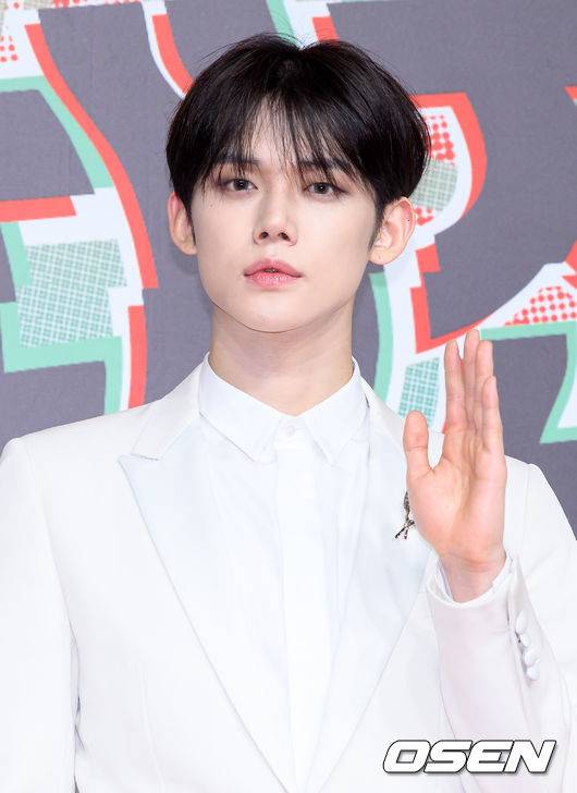 그룹 투모로우바이투게더 연준이 레드카펫을 밟고 있다.