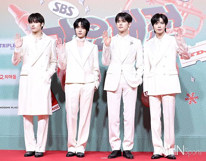 그룹 투모로우바이투게더가 25일 오후 인천 중구 운서동 인스파이어 아레나에서 열린 '2024 SBS 가요대전' 레드 카펫에 참석해 포즈를 취하고 있다.