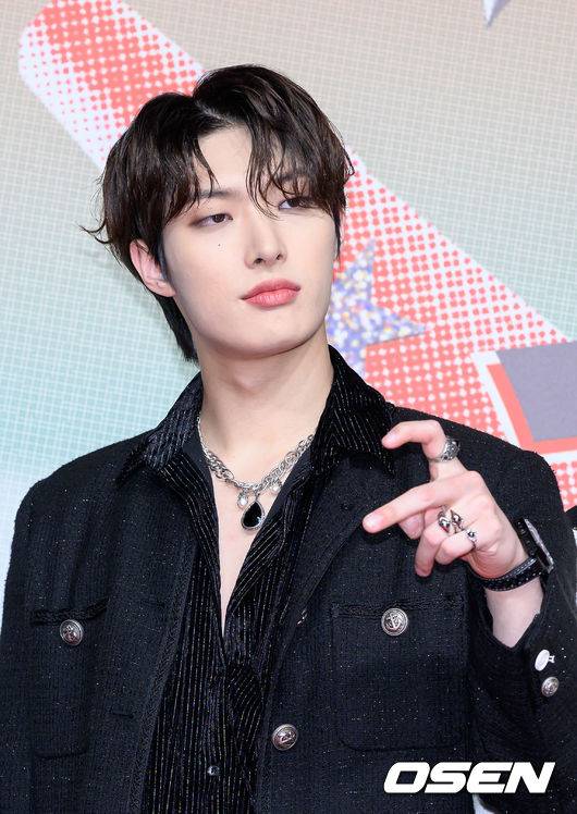 그룹 에이티즈 민기가 레드카펫을 밟고 있다.
