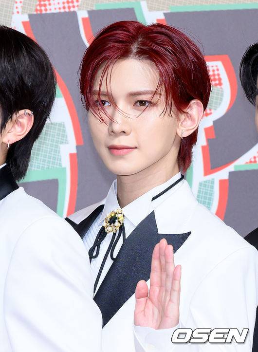 그룹 에이티즈 여상이 레드카펫을 밟고 있다.