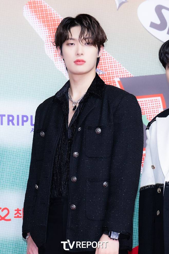 그룹 '에이티즈(ATEEZ)' 민기가 25일 오후 인천 중구 운서동 인스파이어 아레나에서 열린 '2024 SBS 가요대전' 레드 카펫에 참석해 포즈를 취하고 있다.