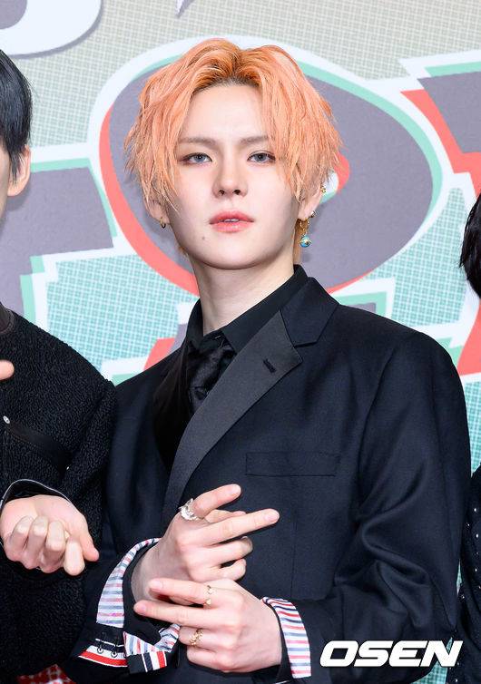 그룹 트레저 요시가 레드카펫을 밟고 있다.