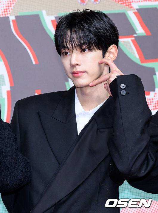 그룹 투어스 도훈이 레드카펫을 밟고 있다.