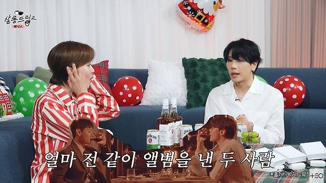 이에 장도연은 뷔의 등신대를 가져와 "든든하시죠?"라고 너스레를 떨었다. 장도연이 "두 분이 원래 친해서 작업을 같이 한 것이냐"라고 묻자 박효신은 "그렇다. 작업 때문에 만난 게 아니다"라고 밝혔다.